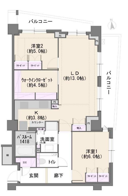 | 間取り | 2SLDK (LD13/K3.8/洋室6/洋室5/S4.5) | ||||||