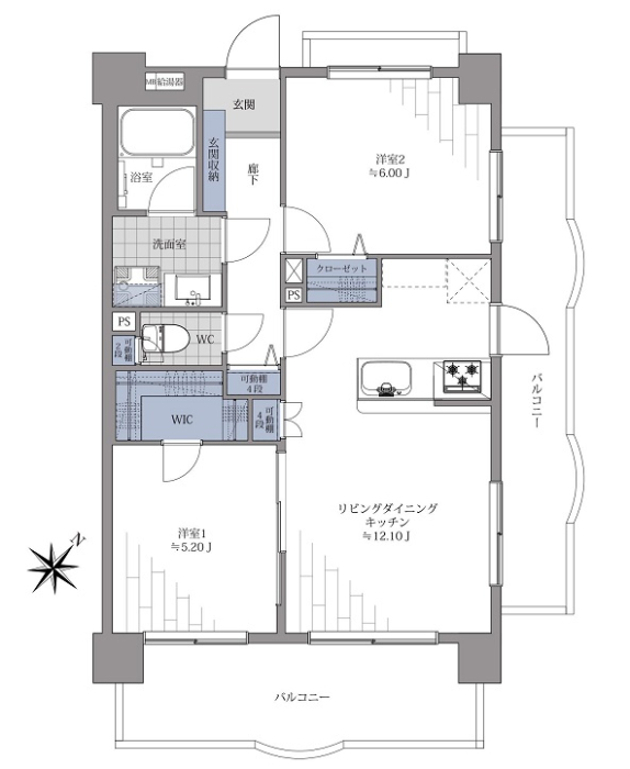 | 間取り | 2LDK (LDK12.1/洋室6/洋室5.2) | ||||||