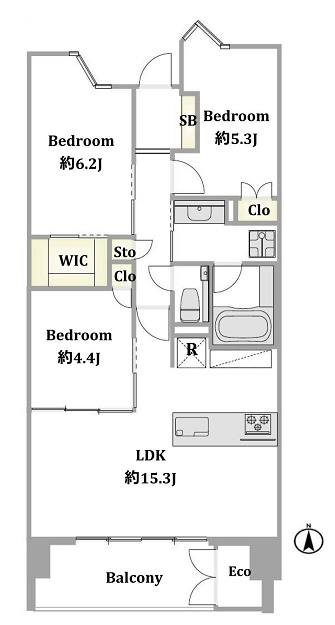 間取り 3LDK (LDK15.3/洋室6.2/洋室4.3/洋室4.4)